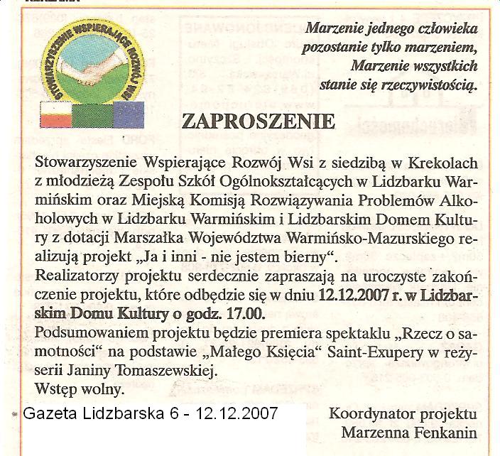 18/58 | Gazeta Lidzbarska | 6-12.12.2007 | |