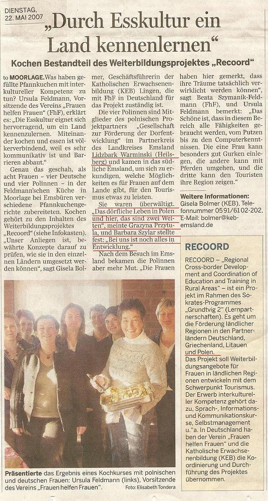 4/44 | Dienstag - Niemcy | Wizyta w Niemczech" Durch Esskultur ein Land Kennenlernen" | 22.05.2007 |